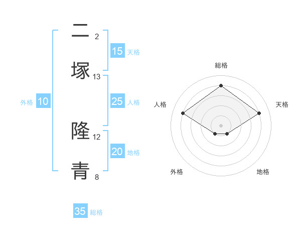 二塚 隆青さんの総格は35画の4点!