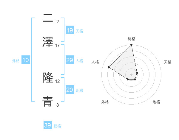 二澤 隆青さんを姓名の画数から五運を鑑定