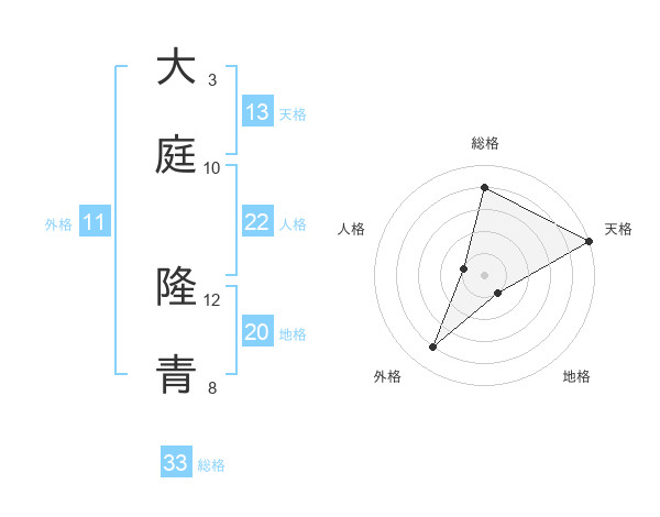 大庭 隆青さんを姓名の画数から五運を鑑定