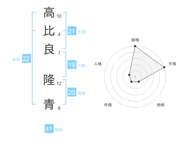 高比良 隆青さんを姓名の画数から五運を鑑定