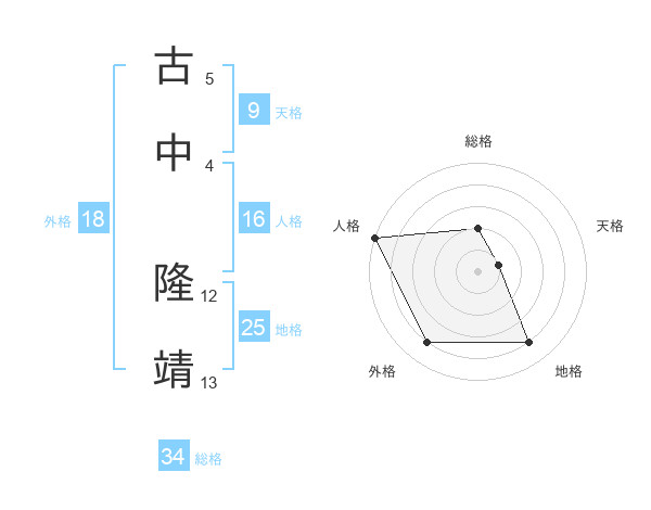 古中 隆靖さんの総格は34画の2点!