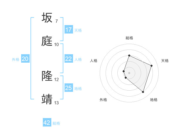 坂庭 隆靖さんを姓名の画数から五運を鑑定