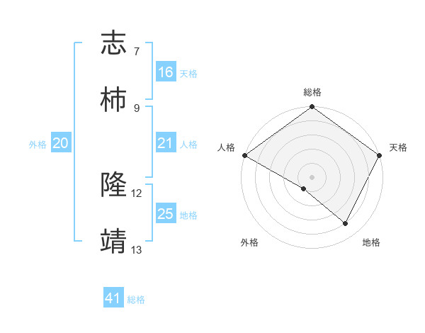 志柿 隆靖さんの天格は16画の5点!