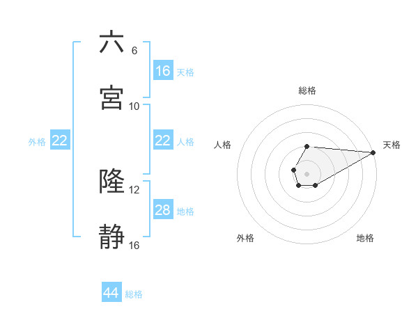 六宮 隆静さんを姓名の画数から五運を鑑定