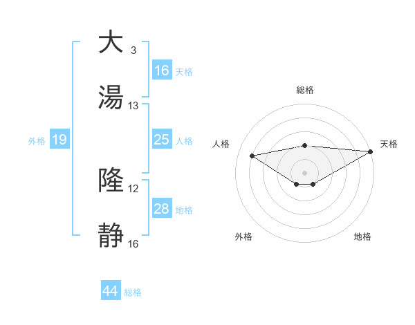 大湯 隆静さんの天格は16画の5点!