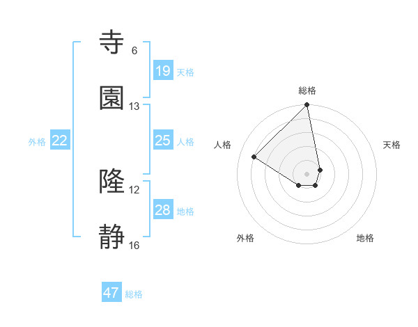 寺園 隆静さんを姓名の画数から五運を鑑定