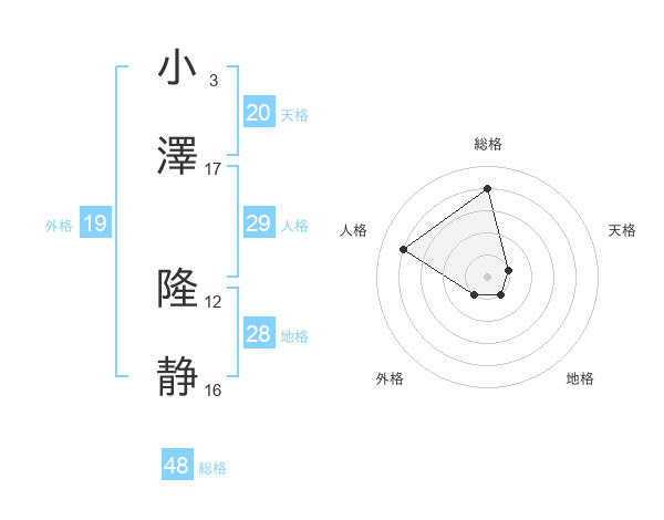 小澤 隆静さんの総格は48画の4点!