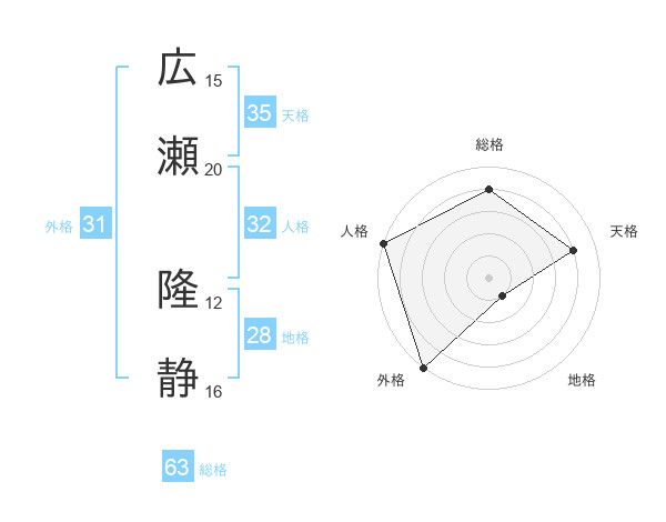 広瀬 隆静さんを姓名の画数から五運を鑑定