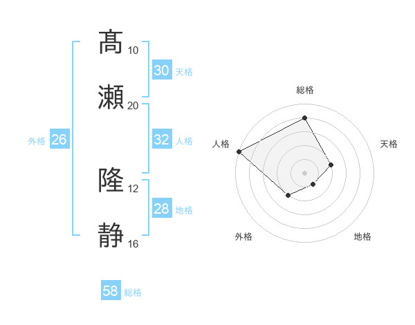 髙瀬 隆静さんを姓名の画数から五運を鑑定