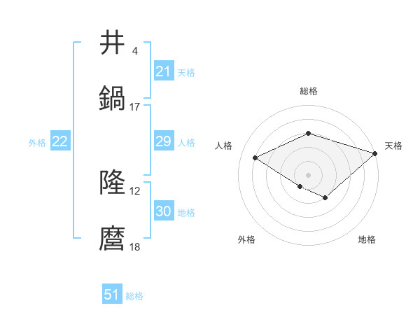 井鍋 隆麿さんを姓名の画数から五運を鑑定