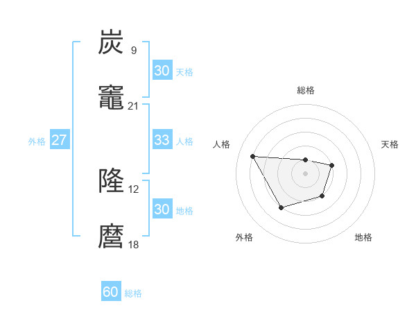 炭竈 隆麿さんの天格は30画の2点!