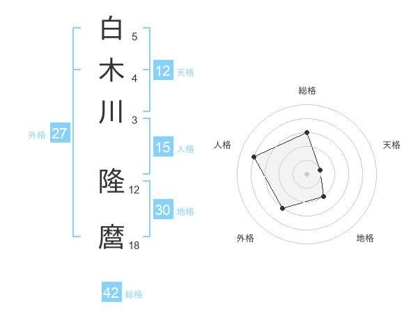 白木川 隆麿さんの総格は42画の3点!
