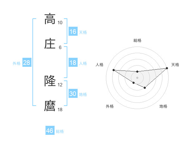 高庄 隆麿さんの総格は46画の1点!