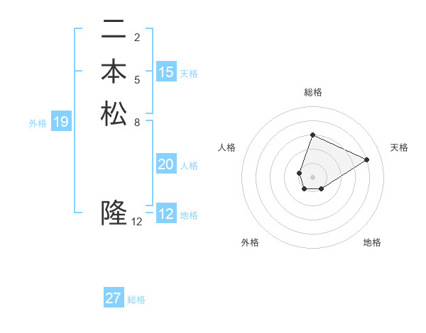 二本松 隆さんの総格は27画の3点!