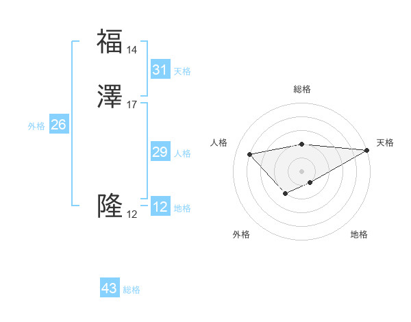 福澤 隆さんの天格は31画の5点!