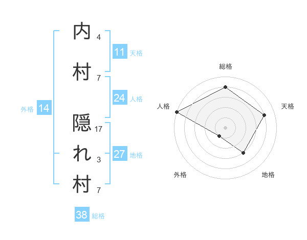 内村 隠れ村さんを姓名の画数から五運を鑑定