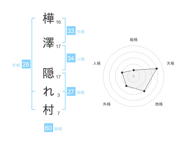 樺澤 隠れ村さんを姓名の画数から五運を鑑定