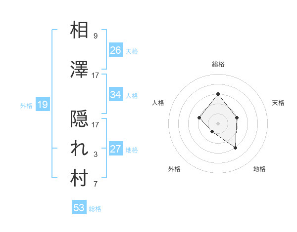 相澤 隠れ村さんを姓名の画数から五運を鑑定