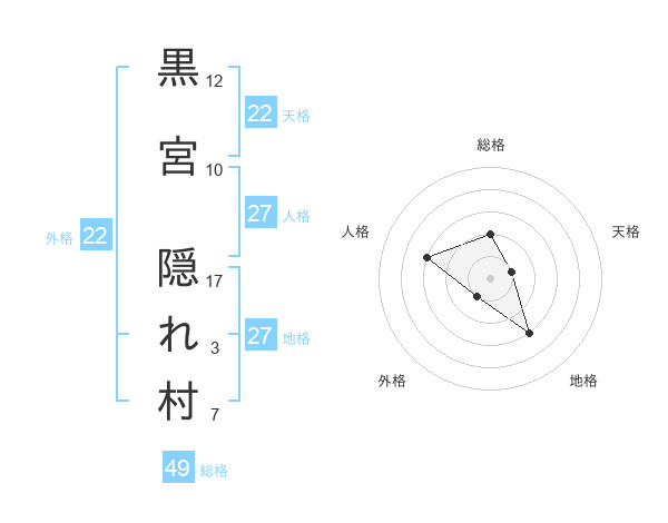 黒宮 隠れ村さんの総格は49画の2点!