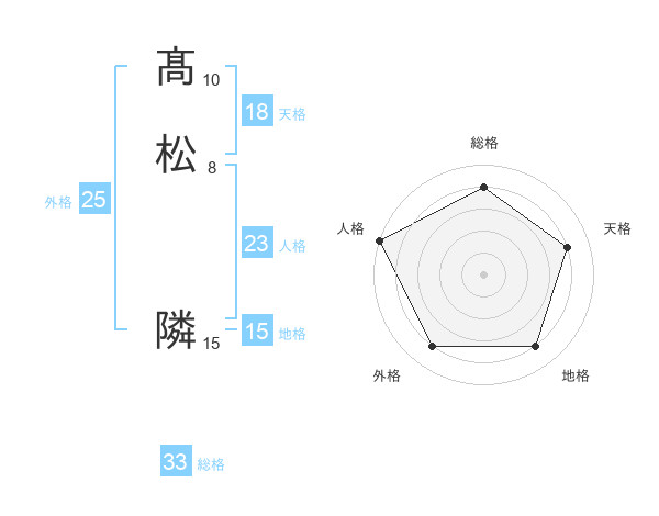 髙松 隣さんの総格は33画の4点!