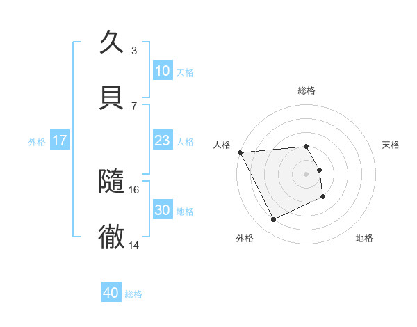 久貝 隨徹さんを姓名の画数から五運を鑑定