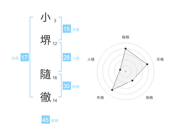 小堺 隨徹さんの総格は45画の4点!