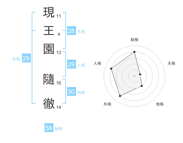 現王園 隨徹さんの総格は58画の4点!