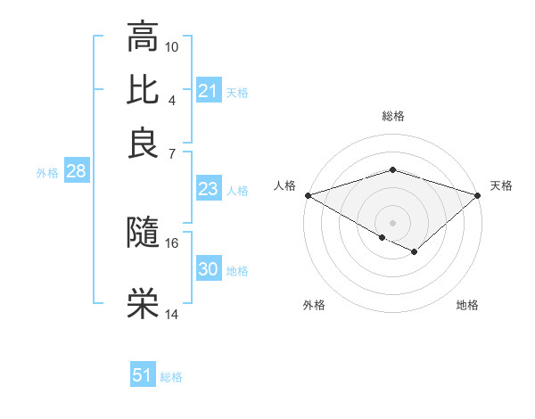 高比良 隨栄さんを姓名の画数から五運を鑑定