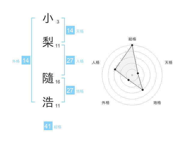 小梨 隨浩さんを姓名の画数から五運を鑑定