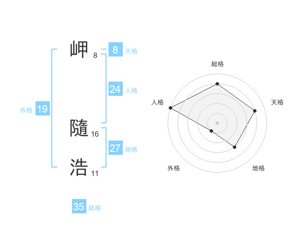 岬 隨浩さんの総格は35画の4点!