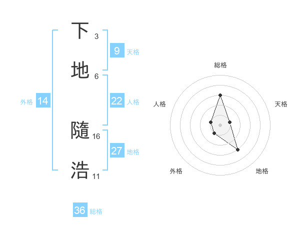 下地 隨浩さんを姓名の画数から五運を鑑定
