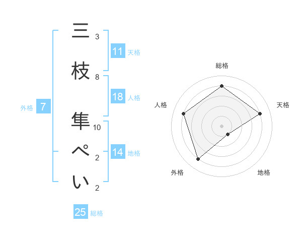 三枝 隼ぺいさんを姓名の画数から五運を鑑定
