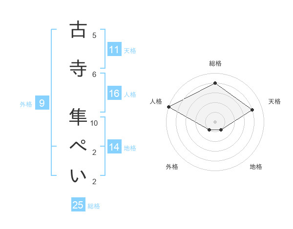 古寺 隼ぺいさんを姓名の画数から五運を鑑定