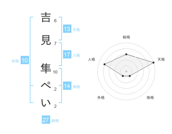 吉見 隼ぺいさんの天格は13画の5点!
