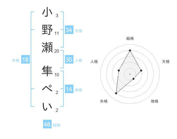 小野瀬 隼ぺいさんの総格は48画の4点!