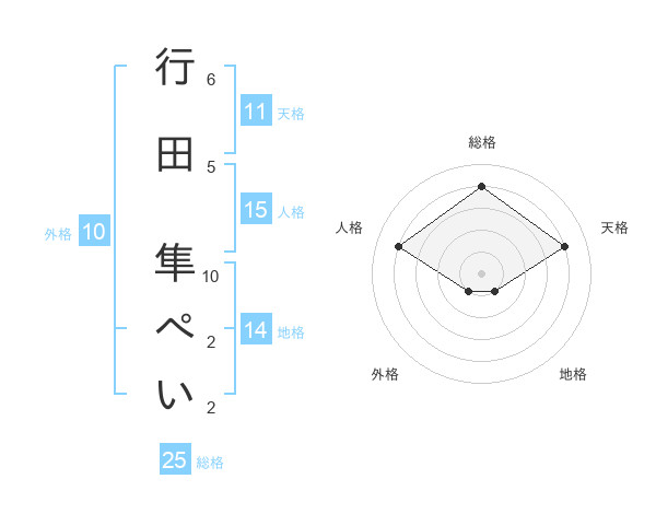行田 隼ぺいさんを姓名の画数から五運を鑑定