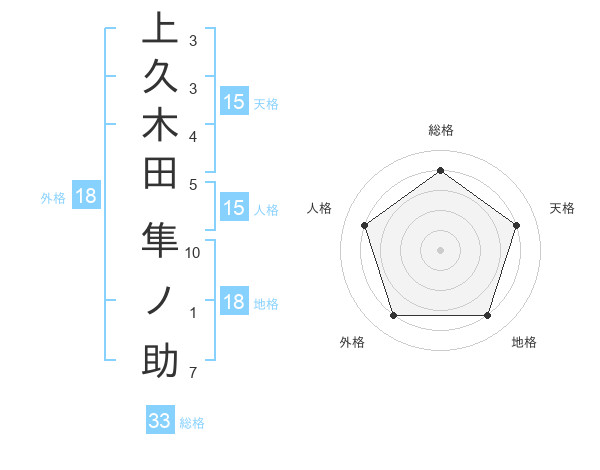 上久木田 隼ノ助さんの総格は33画の4点!