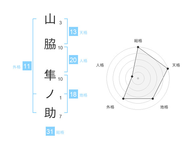 山脇 隼ノ助さんを姓名の画数から五運を鑑定