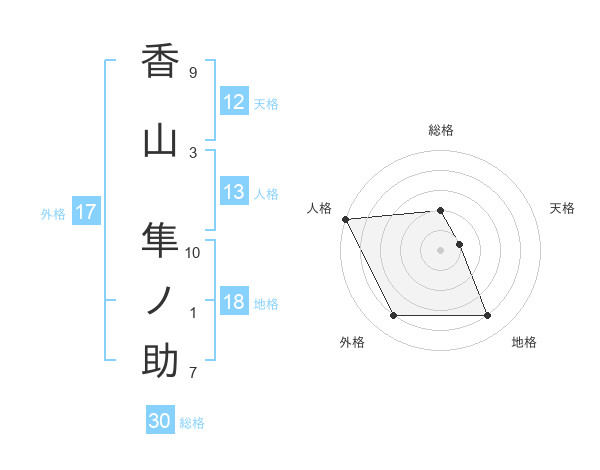 香山 隼ノ助さんの天格は12画の1点!