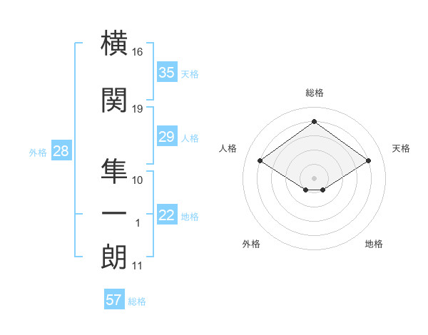横関 隼一朗さんの地格は22画の1点!