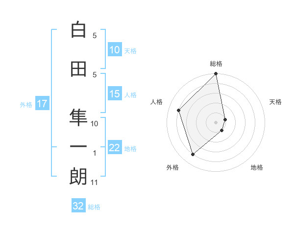 白田 隼一朗さんの総格は32画の5点!