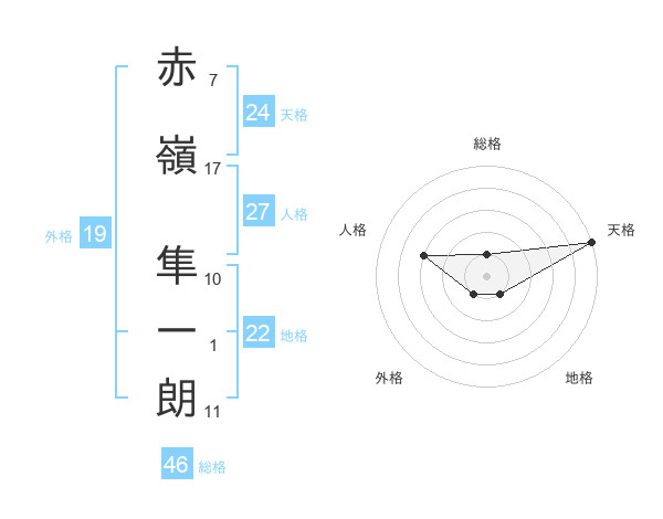 赤嶺 隼一朗さんの地格は22画の1点!