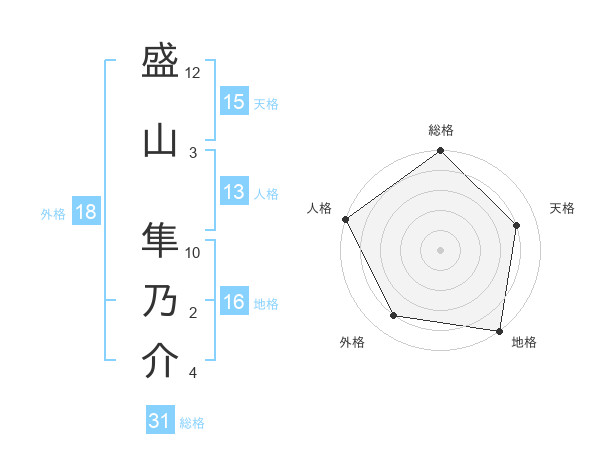 盛山 隼乃介さんを姓名の画数から五運を鑑定