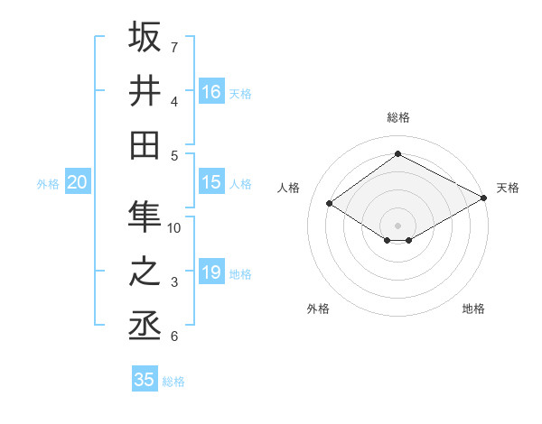 坂井田 隼之丞さんを姓名の画数から五運を鑑定