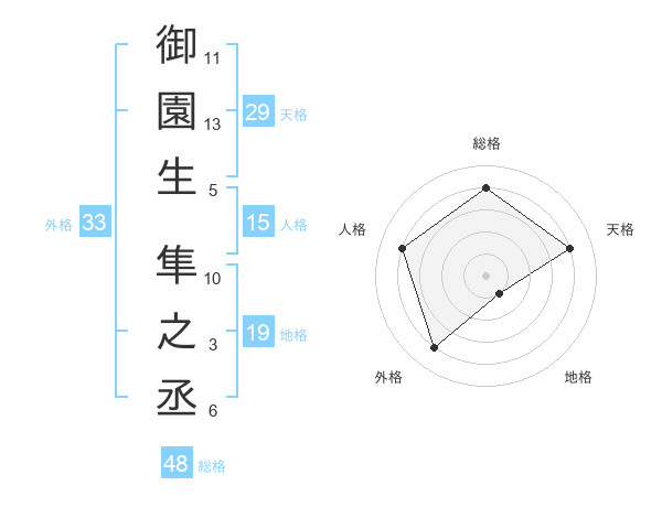 御園生 隼之丞さんを姓名の画数から五運を鑑定