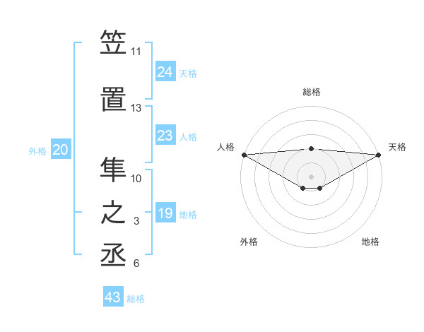笠置 隼之丞さんを姓名の画数から五運を鑑定