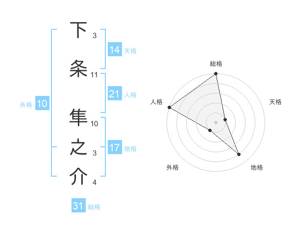 下条 隼之介さんの総格は31画の5点!