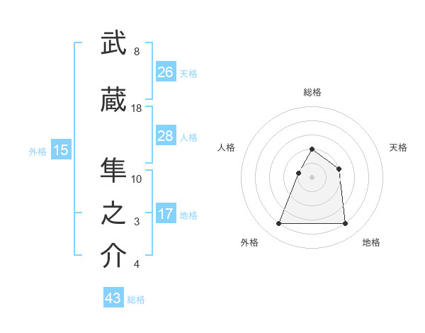 武蔵 隼之介さんの天格は26画の2点!
