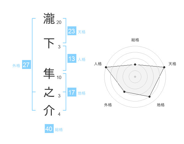 瀧下 隼之介さんを姓名の画数から五運を鑑定