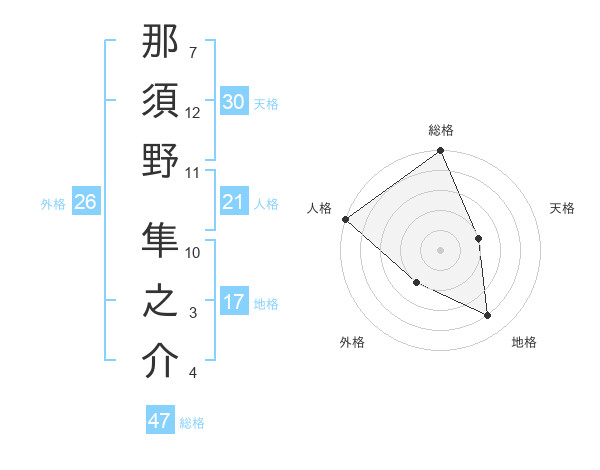那須野 隼之介さんを姓名の画数から五運を鑑定